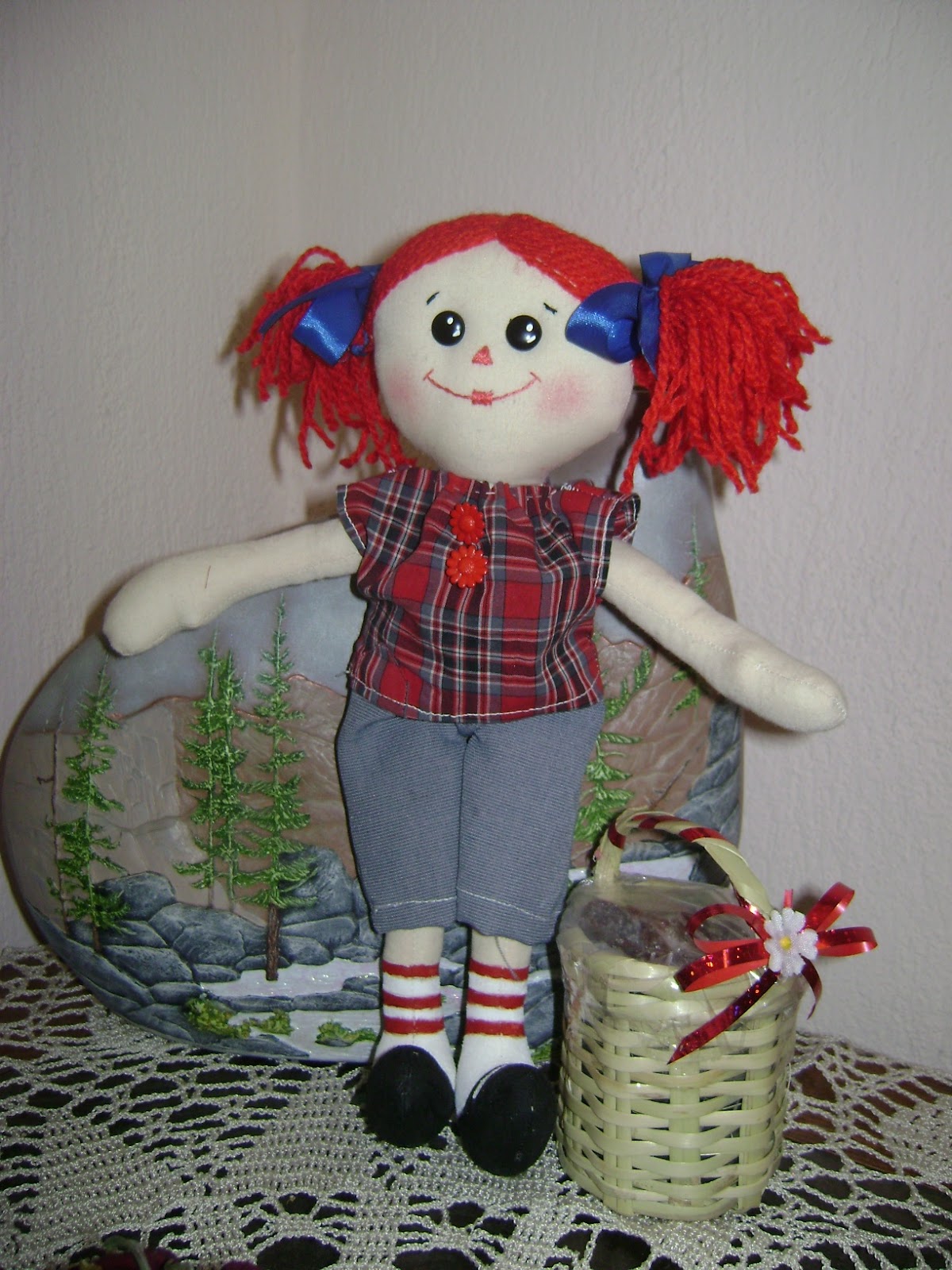Esta es una muñequita que hice para los mumes que organiza ángel que cada mes pero que en este mes quedo suspendido debido a que muchas de las que se anotan no cumplen es una pena. Por cierto no se olviden de visitarla pues esta de Sorteo. la muñeca se llama Lou y esta fue mi versión es de un tamaño pequeño y me gusto como quedo.